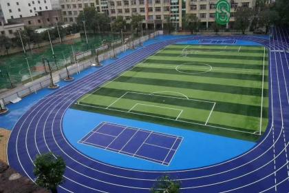一、贵州铜仁运动场混合型跑道改造施工铜仁地处武陵山区腹地,岩溶地貌占比达61%,多溶洞、暗河,且终年多阴雨、日照较少、雨量充沛,混合型跑道改造需重点解决基层沉降、积水、面层耐潮抗老化等问题,兼顾弹性与耐磨性能,适配当地多山地、多雨的地域特点。